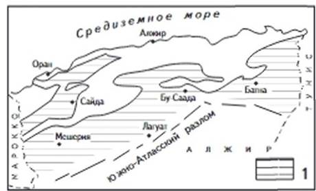 Атласские нефтегазоносные бассейны (НГБ) охватывают обширные пространства Северного Алжира и простираются в широтном направлении примерно на 950 км от Марокко на западе до центральных районов Туниса на востоке. Атласские НГБ приурочены к эпигерцинской платформе и частично - к альпийской складчатой области, а многочисленные нефте-, газо- и битумопроявления установлены в широком стратиграфическом диапазоне мезо- кайнозоя [1].