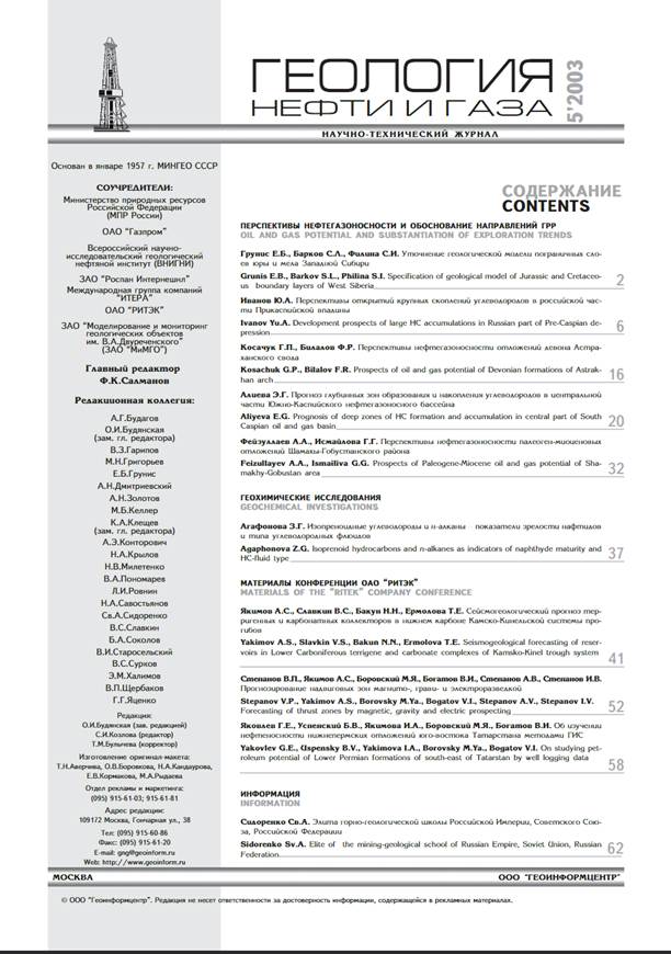 ГЕОЛОГИЯ НЕФТИ И ГАЗА 05’2003
