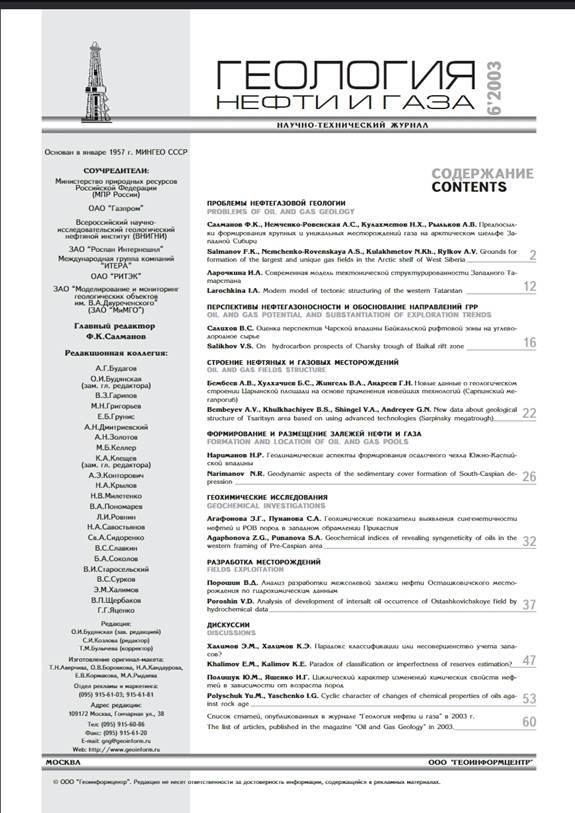 статей, опубликованных в журнале "Геология нефти и газа' в 2003 г
