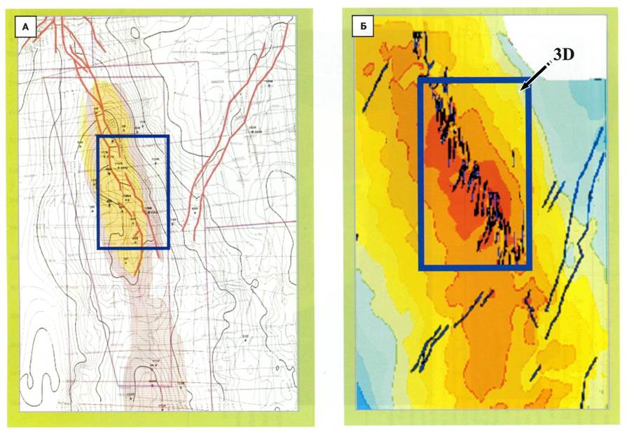 Таким образом, картируемые сейсморазведкой 2D в центральной части Западной Сибири разломы северо-западного и северо-восточного простираний являются региональными швами горизонтальных сдвигов фундамента (в геомеханическом и кинематическом понимании), активизированными на неотектоническом этапе. Внутреннее строение этих швов и структурные парагенезы осложняющих их пли- кативных и дизъюнктивных структур не поддаются интерпретации и расшифровке методами сейсморазведки 2D, в связи с чем все существующие по этой огромной территории структурные построения, основанные на данных 2D, нельзя считать достоверными.