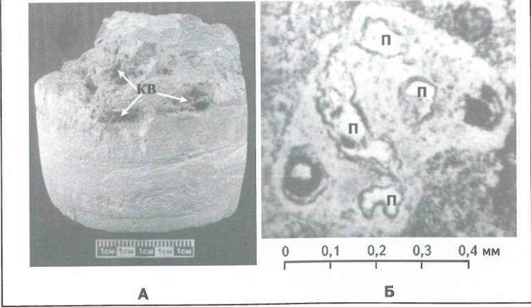 Рис. 4. ИЗВЕСТНЯКИ С ПУСТОТАМИ РАСТВОРЕНИЯ: КАВЕРНАМИ И ПОРАМИ