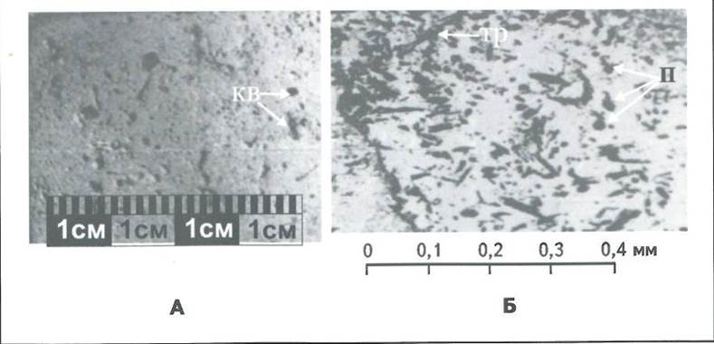 4. Доломиты замещения - коллекторы трещинно-кавернозного типа с унаследованной и вновь образованной вторичной пористостью и кавернозностью. В доломитах отмечается наличие пор и каверн размером 0,05-10,00 мм (рис. 5), часто в них присутствуют трещины с раскрытостью до 0,3 мм. Аналитические значения открытой пористости составляют 4,5-10,7 %, а подсчитанные в шлифах - до 14,3 %, проницаемость в шлифах - 1,20 и 6,33 10-3 мкм2. Доломитами замещения сложены продуктивные толщи Северо-Останинского и Урманского нефтяных месторождений, газоконденсатная залежь на Чкаловском месторождении.