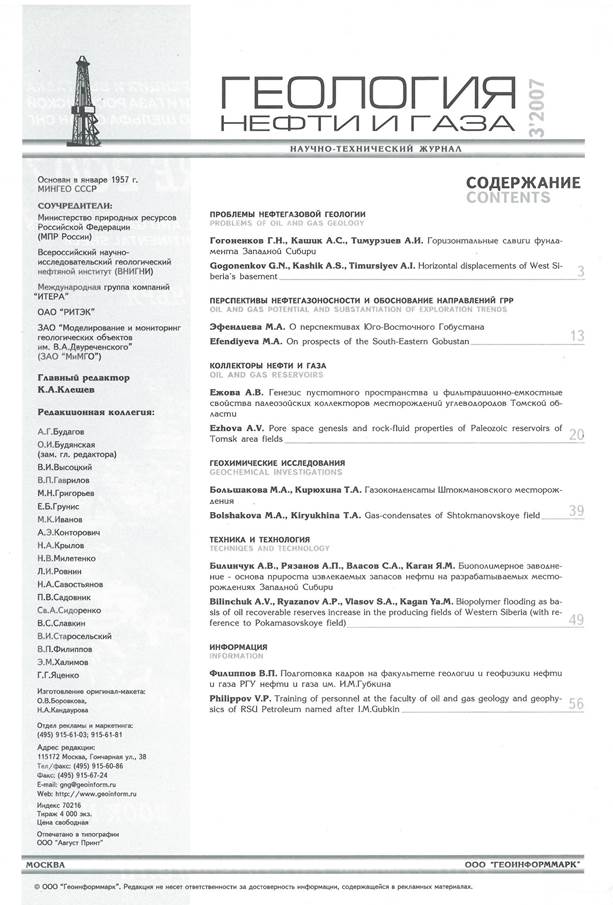 ГЕОЛОГИЯ НЕФТИ И ГАЗ 03’2007 |