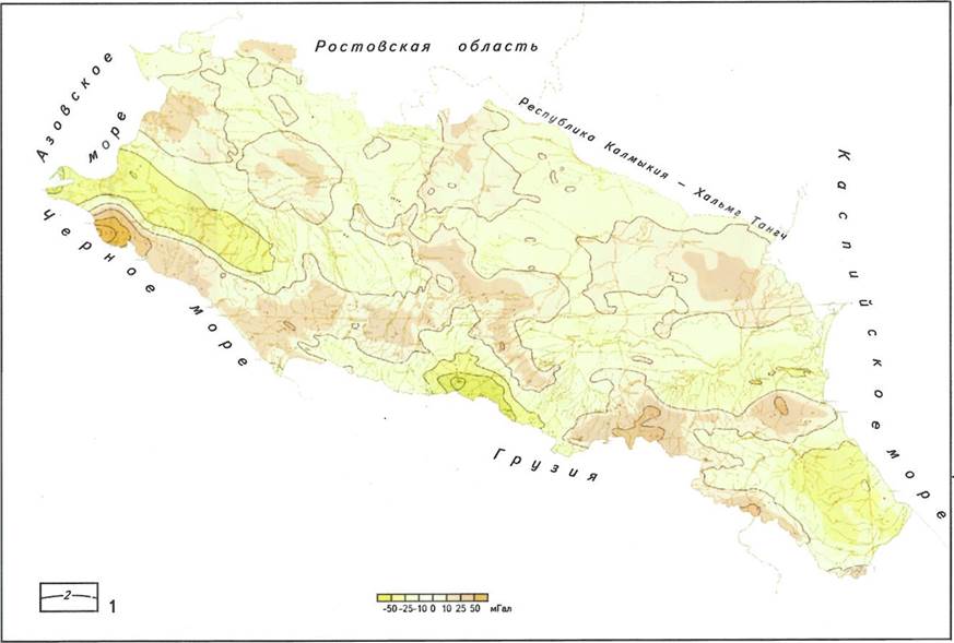 Рис. 3. Карта остаточных аномалий силы тяжести Северного Кавказа (гл. редактор Н.И. Пруцкий)