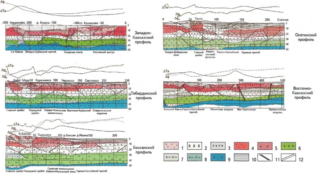 Рис. 6. Глубинные разрезы Северного Кавказа