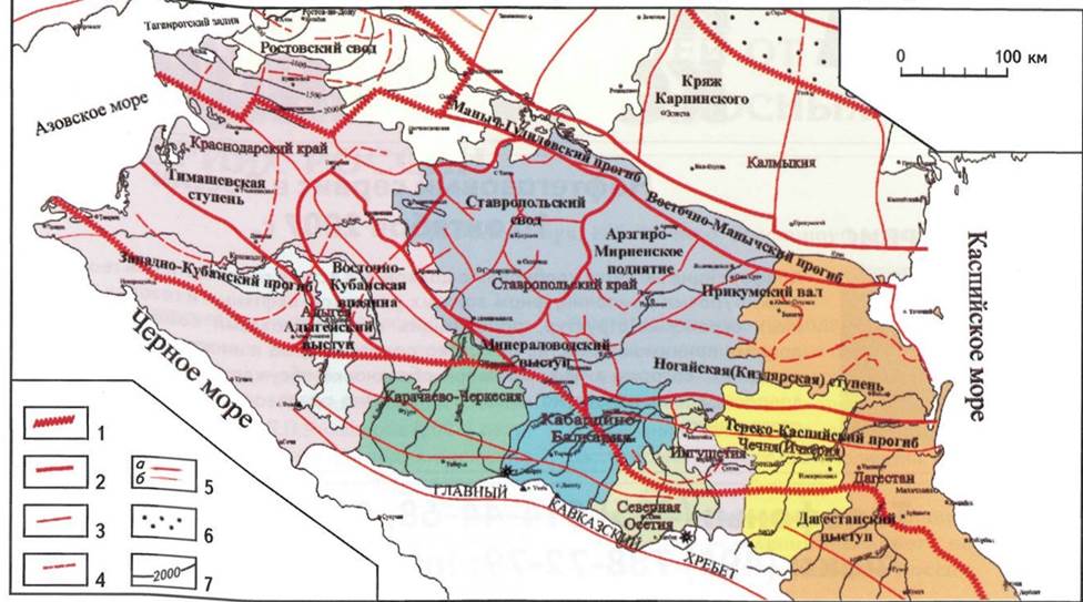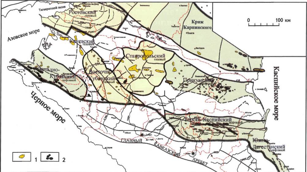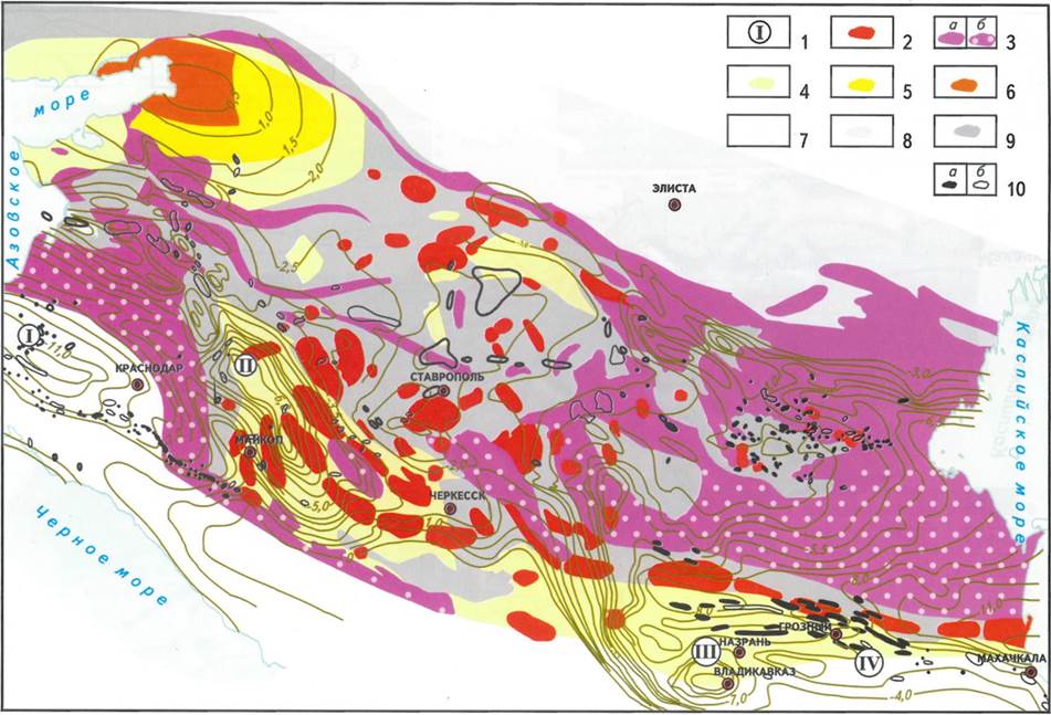 Рис. 10. Нефтегазоносные районы Северного Кавказа