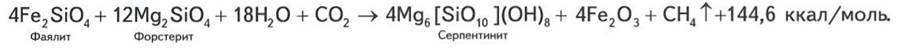 Естественное выделение метана установлено в рифтовых долинах Мирового океана через так называемые черные курильщики - конусообразные вершины высотой в десятки и сотни метров. Специфика такого феномена в том, что вокруг этих вершин отсутствуют осадочные породы. Считается, что образование метана происходит здесь минеральным путем в низах океанической коры за счет гидратации железосодержащих пород основного состава морскими водами с растворенным углекислым газом. Возможная реакция идет по следующей формуле: