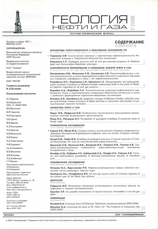 ГЕОЛОГИЯ НЕФТИ И ГАЗА 01’2008