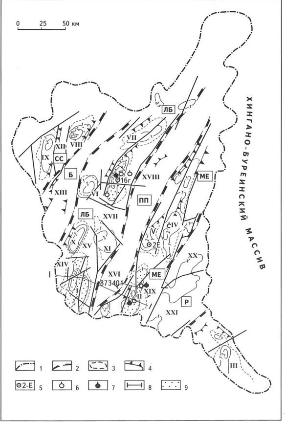 Рис. 1. ТЕКТОНИЧЕСКАЯ СХЕМА ЗЕЯ-БУРЕИНСКОГО ПНГБ