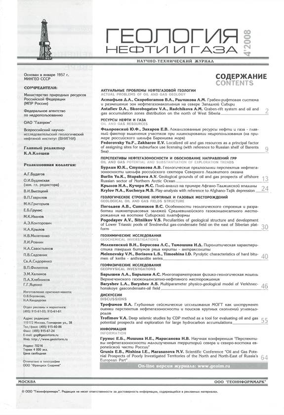 Burlin Yu.K., Stupakova A.V. Geological grounds of oil and gas prospects