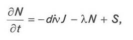 где J - ток частиц Rn в пористой среде в результате диффузии и конвекции; λ - постоянная распада Rn, с-1; N - число частиц Rn в единице объема пористой среды, см3; S - интенсивность эманирования частиц, см3с.