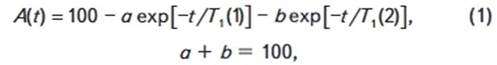 Измерения релаксационных характеристик состояния воды в модельных образцах проводились на импульсном ЯМР-спектрометре фирмы BRUKER mq10 на частоте 10 мГц при помощи импульсной последовательности 90° - t- 90° -. Релаксационные кривые с высокой точностью описываются функцией вида