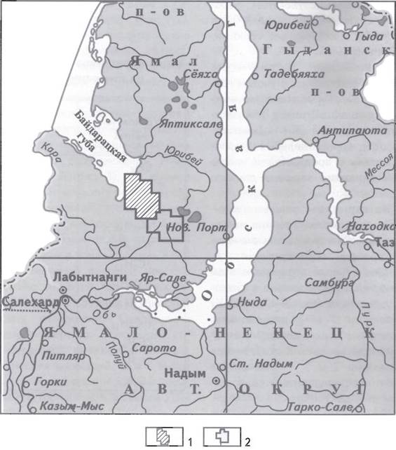 Лицензионные участки: 1 - Ярхутаяхский, 2- Мантойский