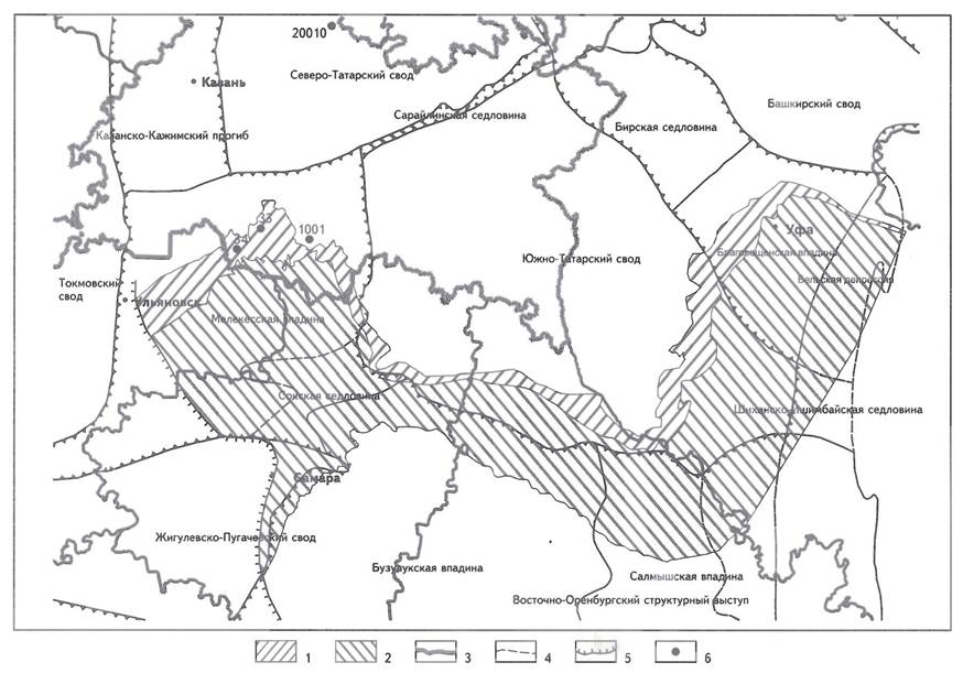 1. структурная карта по кровле мендымского горизонта верхнего девона западных районов Татарстана и Самарской области;
