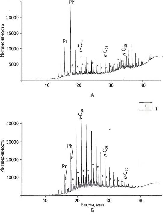 Аналитическое исследование насыщенной фракции битумоидов проводилось методами газожидкостной хроматографии и хромато-масс-спектрометрии.