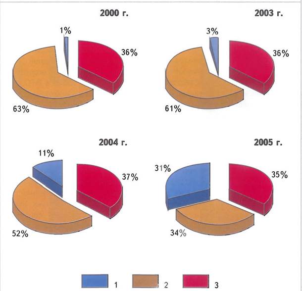 На примере геофизического сектора видно насколько высок темп поглощения российского рынка компаниями с иностранным капиталом (рис. 5, см. рис. 4). Подобная тенденция характерна и для других сегментов сервисного рынка. В секторах бурение, ГИС и сейсморазведка доля компаний с иностранным капиталом к началу 2006 г. достигла соответственно 48, 31, 13 %. В целом по сервисному рынку России иностранное присутствие превысило 30 %.