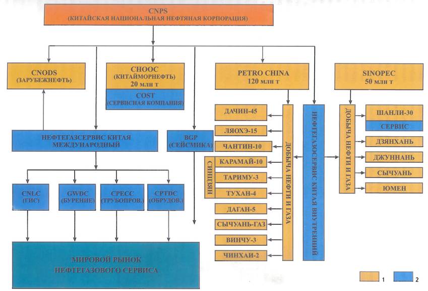 Рис. 6. СТРУКТУРА УПРАВЛЕНИЯ НЕФТЕГАЗОВЫМ КОМПЛЕКСОМ В КИТАЕ