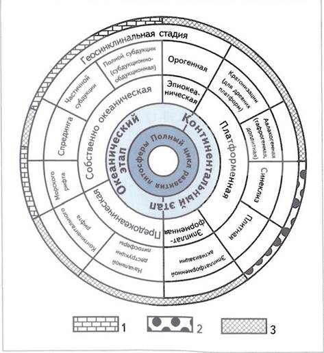 Рис. 1. ДИАГРАММА ПОЛНОГО ГЕОДИНАМИЧЕСКОГО ЦИКЛА ЭВОЛЮЦИИ ЛИТОСФЕРЫ
