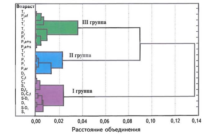 Рис. 3. ПРИМЕР ГЕНЕТИЧЕСКОЙ ТИПИЗАЦИИ НЕФТЕЙ НА ОСНОВЕ КЛАСТЕРНОГО АНАЛИЗА (север Тимано-Печорской НГП)