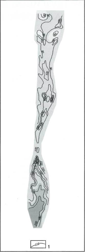 Алтунино-Шунакский субмеридиональный прогиб возник как один из многих элементов системы мелких обрамляющих грабенов погребенного рифейского Серноводско-Абдулинского авлакогена по унаследованному от доплатформенного времени заложения расколу фундамента. На территории Самарской области фиксируется его отправное положение, которое, по В.А. Полякову (1999), носит наименование Студенцовско-Исаклинского. Длина Алтунино-Шунакского прогиба на территории Татарстана составляет около 145 км. Наибольшей геоморфологической выразительностью он обладает в эродированной поверхности кристаллического фундамента (рис. 1). Максимальная амплитуда погружения осевой зоны наблюдается в южной части прогиба, где она достигает 110-150 м по отношению к бортам, 70 м в центральной части и варьирует от 30 до 60 м в северной. На расстоянии 104 км, охватывающем вектор от административной границы Самарской области до северных контуров Ромашкинского и Ново-Елховского месторождений, намечаются девять отдельных фрагментов, отделяющихся друг от друга повышенными зонами и тем не менее организованными в единую систему прогиба. Находясь в его общей структуре, каждое из звеньев развивалось в самостоятельном режиме. Автономный режим формирования мелких фрагментов прогиба определяет высокая дифференциация слагающих его мощностей пород (рис. 2). Подтверждением этому служит виражирование под небольшим углом осевой линии, каждый элемент которой корреспондируется с отдельным фрагментом прогиба. Безусловно, с практических позиций наиболее пристального внимания заслуживает строение собственно этих фрагментов прогиба, которые стыкуются друг с другом под различным углом. Фактическая длина единичного фрагмента в девонских отложениях может колебаться от 9 до 19 км.
