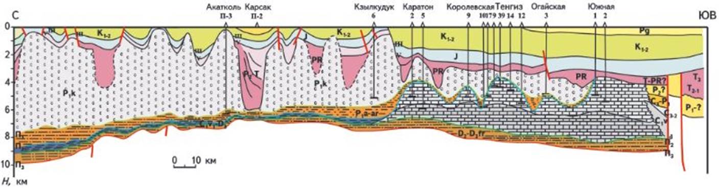 Рис. 3. Геологический разрез Каратон-Тенгизской НГЗ