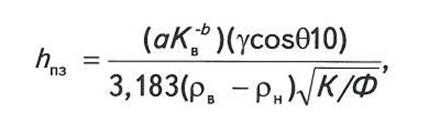где hпз - высота переходной зоны, м; Кв - значения водонасыщенности, доли ед; К- проницаемость, мД; Ф - пористость, доли ед.; γ - поверхностное натяжение нефть - пластовая вода, дин/см; θ - угол смачиваемости, град.