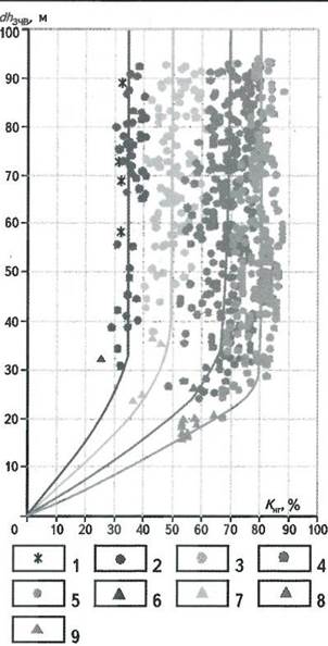 Кв = Кво+( 1 - Кво)*exp(-0,12dh) (Гун-Еганское),